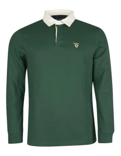 The Barbour Crest Rugby Top features a polo inspired style, crafted from 100% cotton, this top boasts a seasonal tartan to the back of the neck and is finished with an enlarged embroidery to the chest.