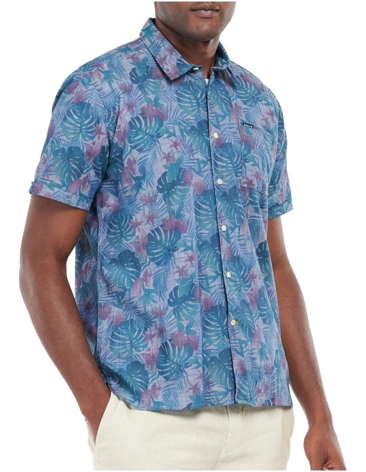 The Barbour Dunford Summer Shirt boasts an all over large tropical leaf print for premium summer styling. Crafted from 100% cotton, this shirt is finished with a Barbour and Shield branded label to the left chest pocket.