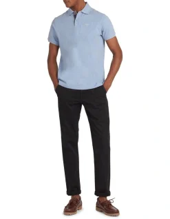 A classic piece with a Barbour twist, this polo shirt is trimmed with our classic tartan to the inner placket and back neck tape. Featuring a two-button placket, sit down collar and ribbed cuffs, the polo is finished with an embroidered Barbour shield logo to the chest.