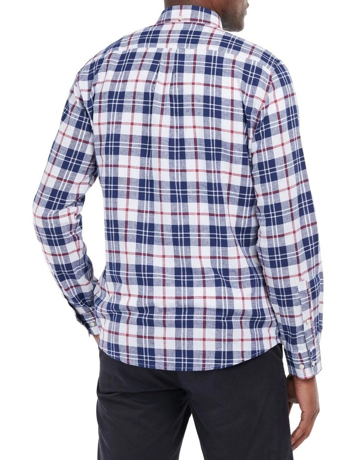 The Barbour Thorpe Tailored Shirt boasts a linen blend fabric for premium wear and comfort. Showcasing an all over highland check, this shirt boasts a left chest pocket and is finished with a navy Barbour wrap label.