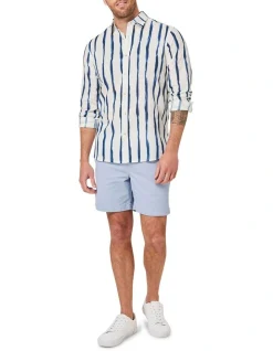 Stripes are everywhere this summer, and our hand-drawn design is a front-runner for effortless style. Made from a light and soft cotton and linen blend, this white and navy stripe shirt keeps you feeling fresh all day long. Wear it open over your favourite tee, or wear it buttoned up with chinos for a fresh take on classic dressing.
