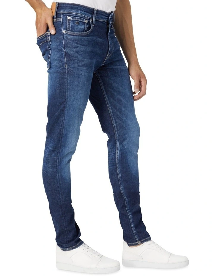 Our ultimate taper fit; with a regular waist that slims throughout the leg to a skinny leg opening.