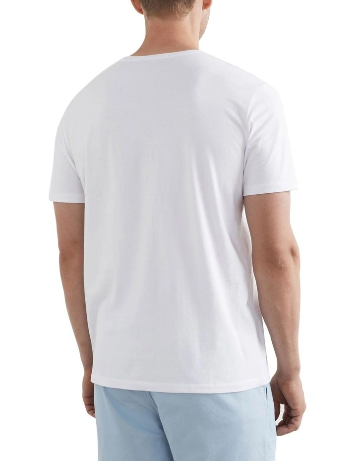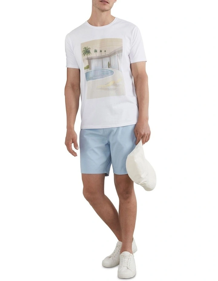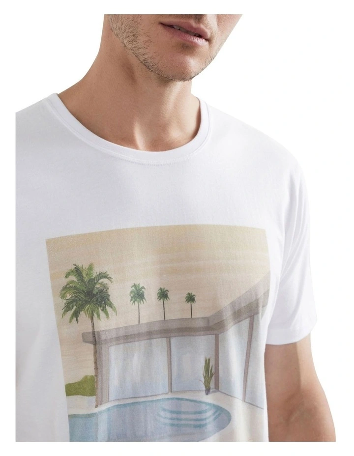 Our Poolside T-Shirt is an essential piece in your warm weather wardrobe. Made from 100% BCI cotton, this stylish tee features a poolside graphic, as well as crew neck, short sleeves and comfortable regular fit. Pair with our Reid Crossover Leather Slide and Denim Bucket Hat. Our model is 188cm tall and wears a size M.