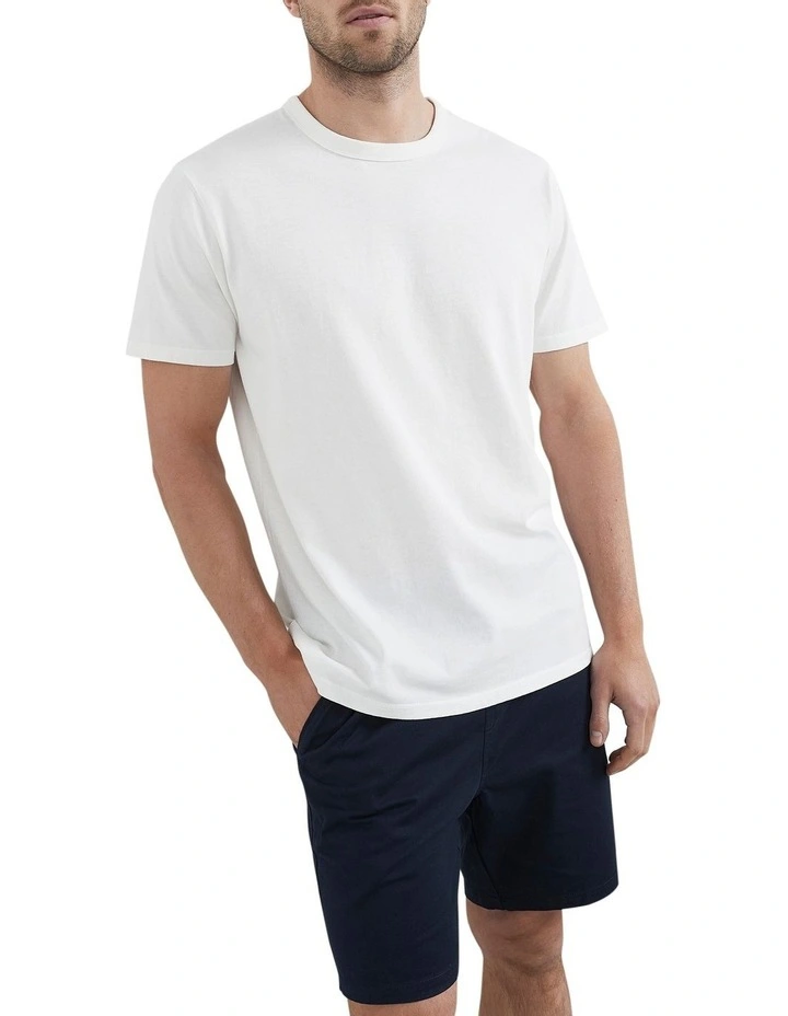 Our Rugged Jersey T-shirt offers a soft and durable foundation layer for any outfit. Featuring a relaxed fit, round neckline, and garment-dyed wash design. Wear with our Marine Plaid Classic Fit Shirt and Slim Tapered Jean. Our model is 188cm tall and wears a size M.
