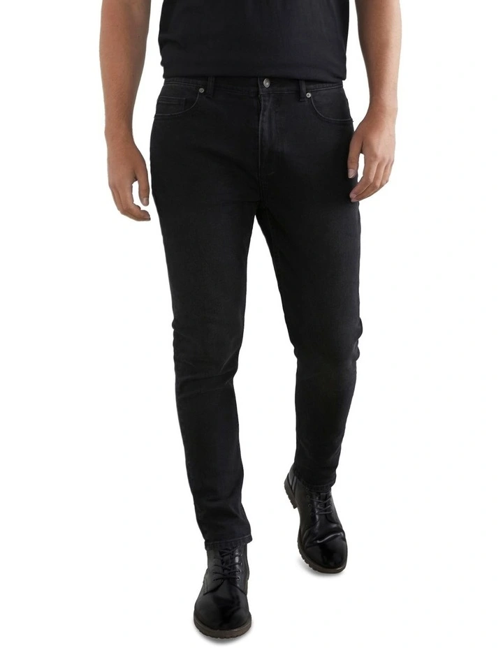 Our Slim Tapered Jean are an essential staple in every wardrobe. Offering a tapered yet slim fit leg profile in washed black denim, these stylish jeans are made from 100% BCI cotton and feature a waist shank button with a zip fly closure, five pocket styling and the perfect amount of stretch. Pair with our Utility Overshirt and Miles Leather Boot.Â