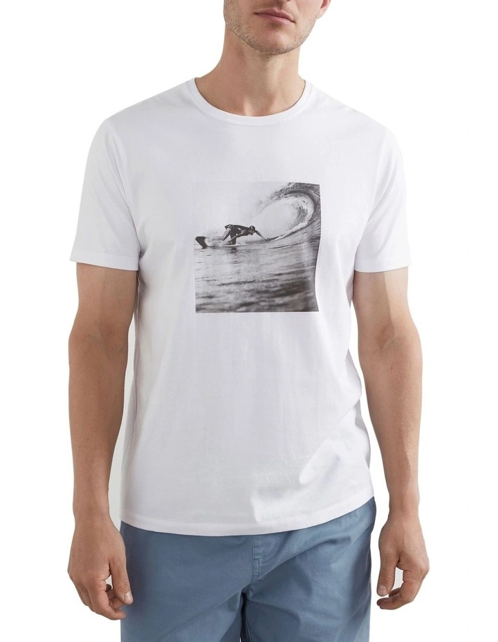 Our Surfer T-Shirt delivers ultimate casual style. Featuring a photography graphic, this on-trend tee is made from 100% BCI cotton and offers short sleeves, a crew neck and comfortable regular fit. Pair with our Linen Classic Fit Shirt and Pull On Short. Our model is 188cm tall and wears a size M.