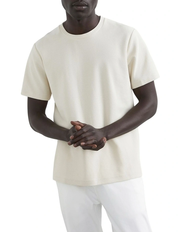 Our Textured T-Shirt is a must-have casual piece. Available in multiple colourways, this premium tee offers a slightly heavier textured fabric, with a self-fabric crew neck, short sleeves and stretch. Pair with our Slim Chino Short and Zane Leather Slide. Model wearing our Khaki and Putty colourways wears a size AU M. Our model is 187cm tall. Model Wearing our Black colourway wears a size AU M. Our model is 188cm tall.