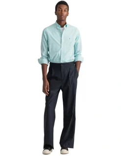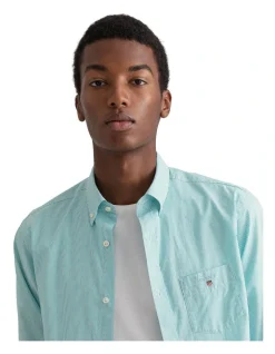 Crafted in a classic cotton broadcloth, this regular fit banker stripe shirt has our signature button-down collar, shield logo embroidery, and locker loop and boxpleat at the back.