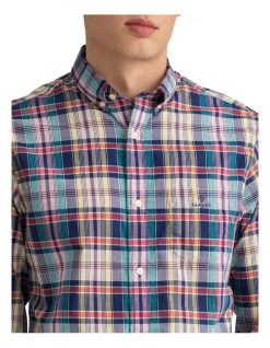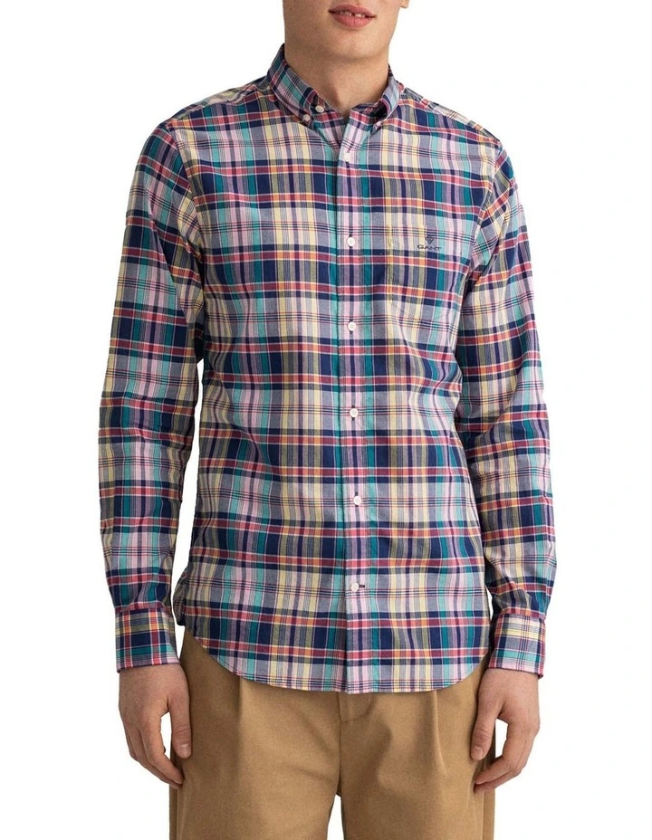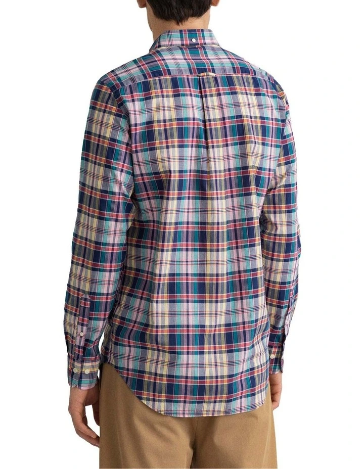 Crafted in a soft, washed cotton poplin in a colourful check pattern, this regular fit shirt has a shorter hem that’s made to be worn untucked. The shirt features all of our signaturesthe button-down collar, the logo embroidery, and the boxpleat and locker loop at the back.