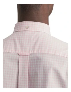 Crafted in cotton broadcloth with a gingham pattern, this regular fit short-sleeved shirt has our signature button-down collar, logo embroidery at the chest, and locker loop and boxpleat at the back.
