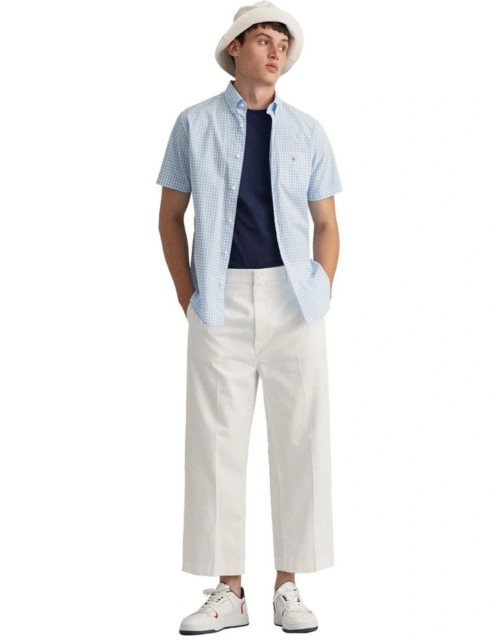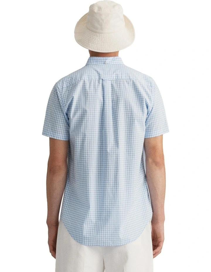 Crafted in cotton broadcloth with a gingham pattern, this regular fit short-sleeved shirt has our signature button-down collar, logo embroidery at the chest, and locker loop and boxpleat at the back.