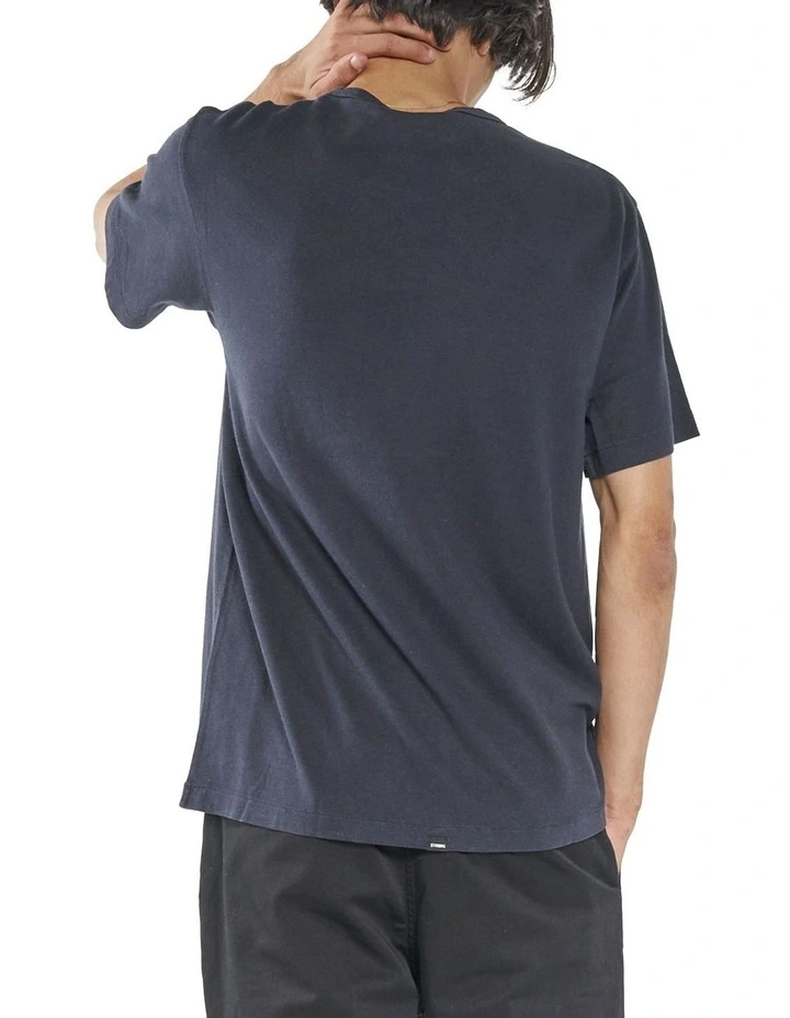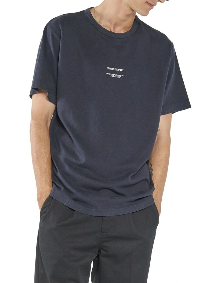 Broody and inky, the dark navy featured in the Thrills Territory story sits across tops and bottoms. The perfect alternative to black, we are loving the military inspired graphic on the tops in our hemp organic cotton blend.