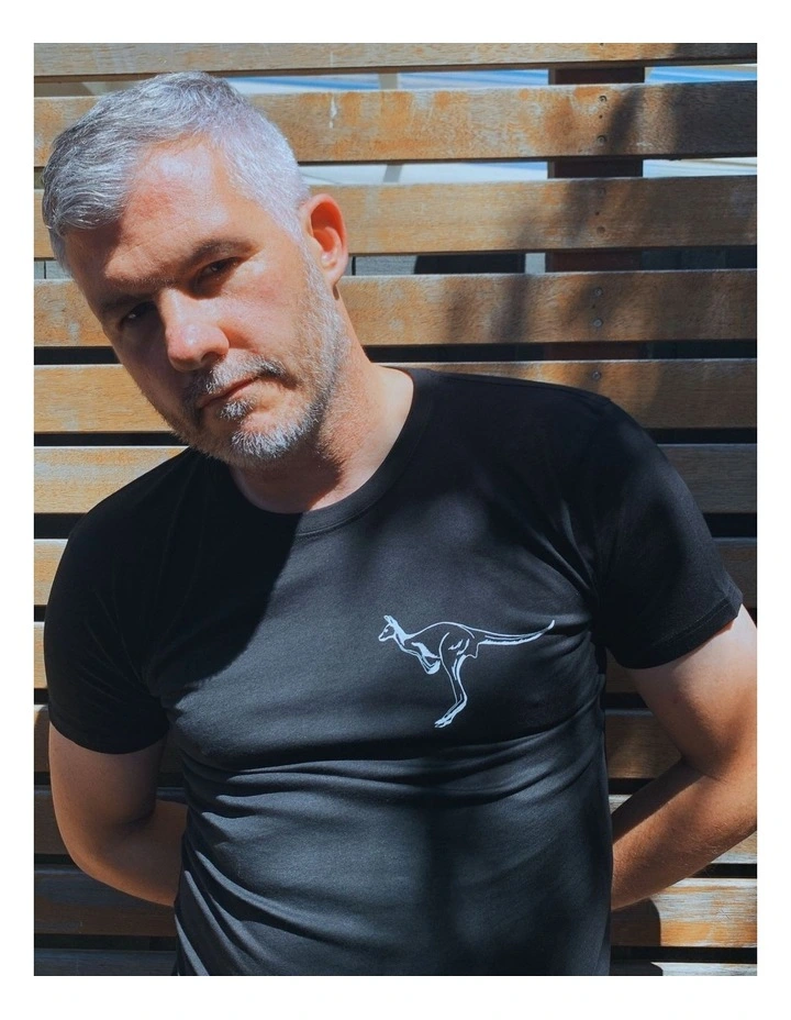 Hand drawn design of a Kangaroo by West Melbourne artist, Jess McDonald, printed on 100% organic cotton slim fit unisex t shirt.