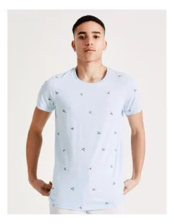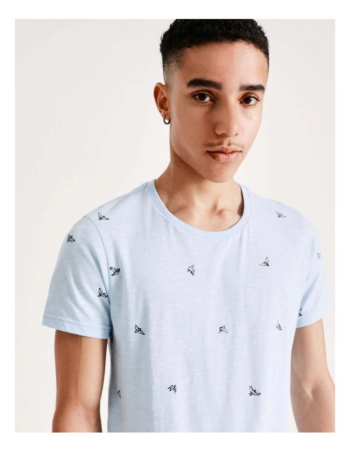 Kenji Desert Eagle Convo Print Short Sleeve Tee In Light Blue