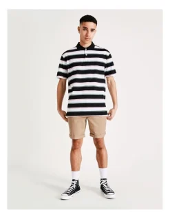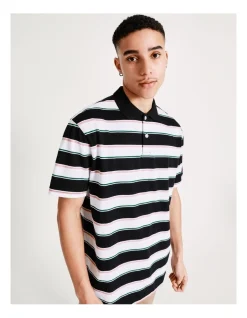 Every wardrobe needs a reliable polo shirt. This shirt has a collared neckline, a yarn dyed stripe and is made from cotton for comfort and durability. Perfect for day to night wear.