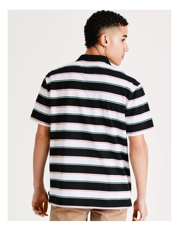 Kenji Fairway Stripe Short Sleeve Polo In Black