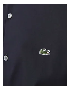 Feel the city spirit and freedom of movement of this solid-colored stretch cotton poplin shirt. This comfortable piece features a small green embroidered crocodile on the chest and Lacoste engraved mother-of-pearl effect buttons. You can confidently wear it with all of this season’s pants.