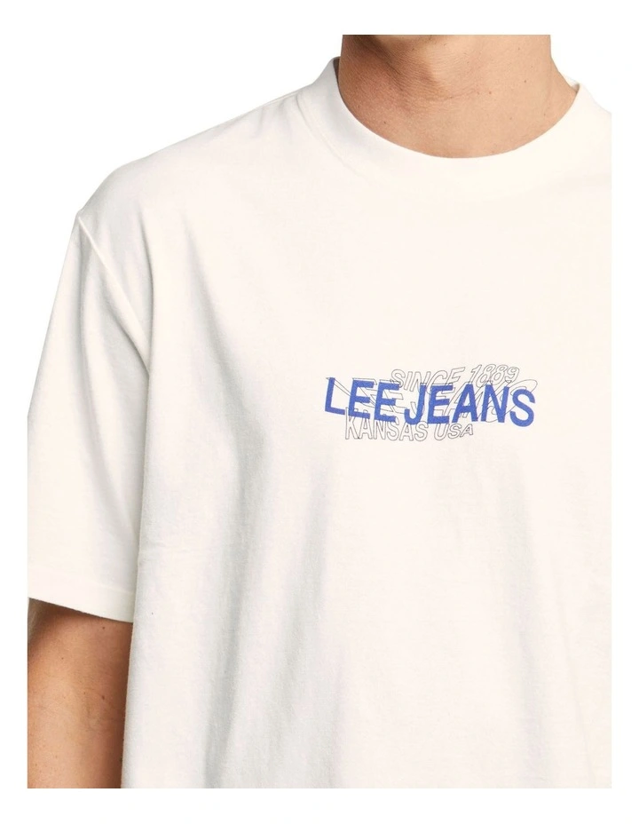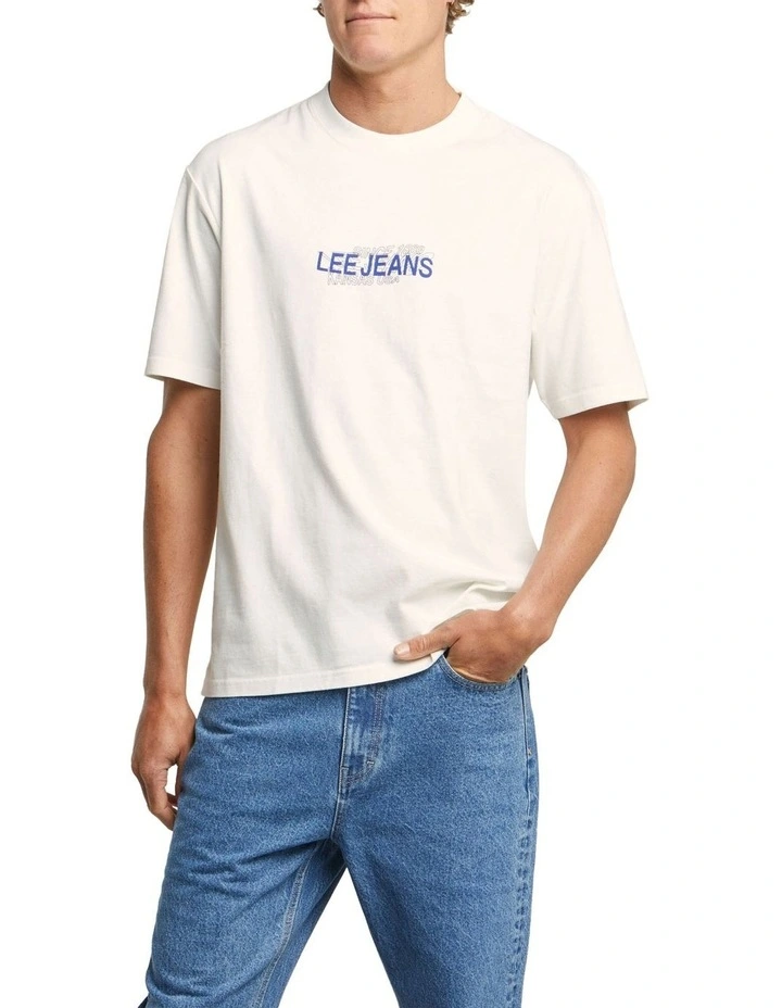 The Lee Wavybone Baggy Tee in Vintage White is a loose and baggy fit T-shirt, made in a heavy weight cotton jersey. This tee has a soft hand feel and drape when worn. The centre Lee logo is a digital print of Y2k inspired word art.