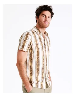 Elevate your look with a short sleeve shirt. This shirt has a regular fit, with a striking all-over print and a button up front. Wear it with your favourite denim for an on-trend fit.