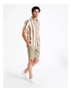 Maddox Kooeloah Linen Blend Stripe Short Sleeve Shirt in Cappuccino