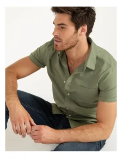 Elevate your look with a short sleeve shirt. This shirt has a regular fit, with a striking all-over print and a button up front. Wear it with your favourite denim for an on-trend fit.