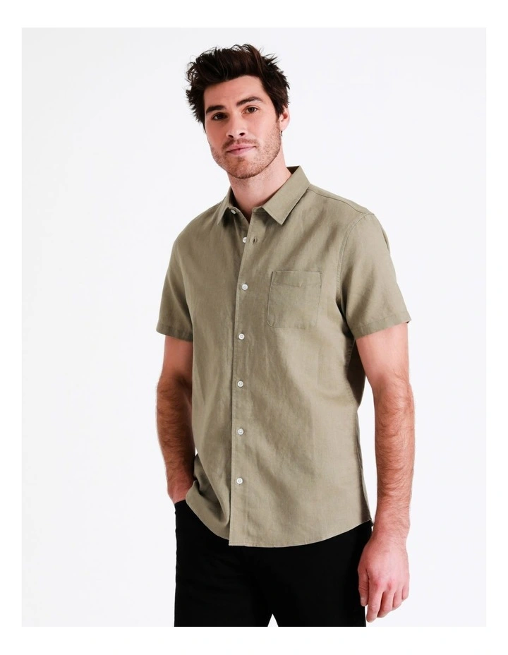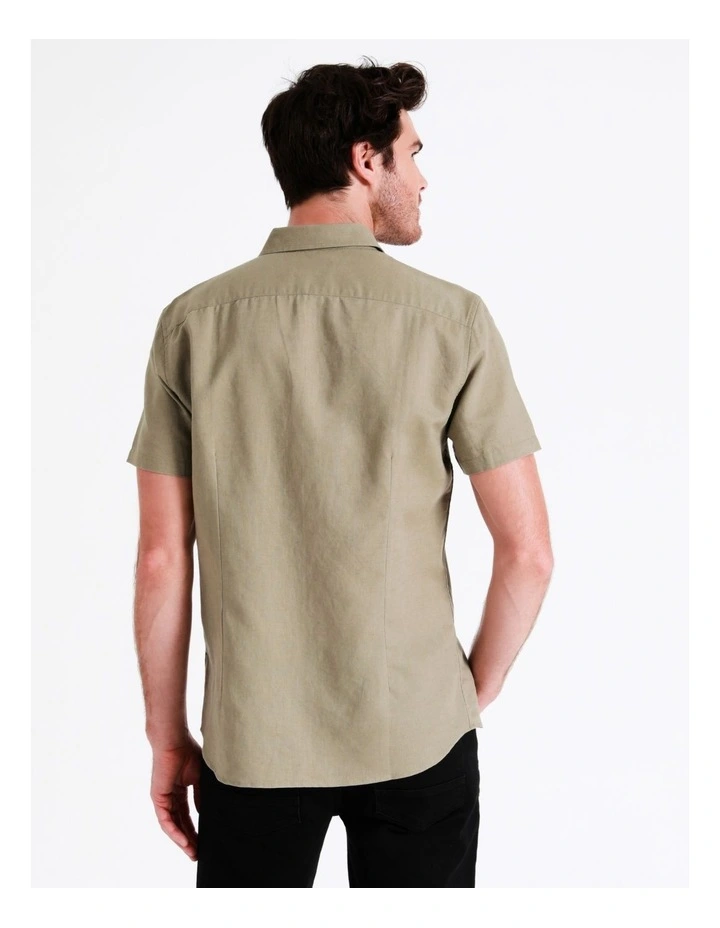 Maddox Lennon Linen Short Sleeve Shirt in Khaki