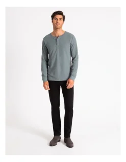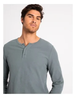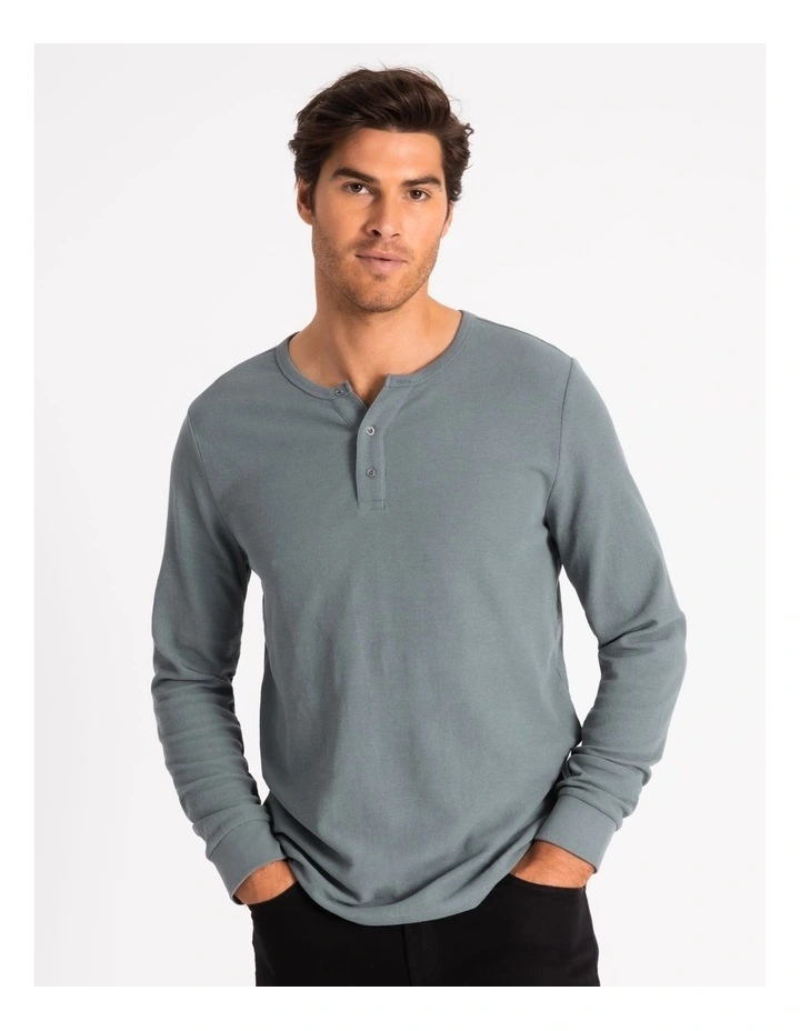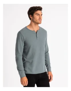 Maddox Neeson Long Sleeve Waffle Henley Tee Blue