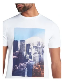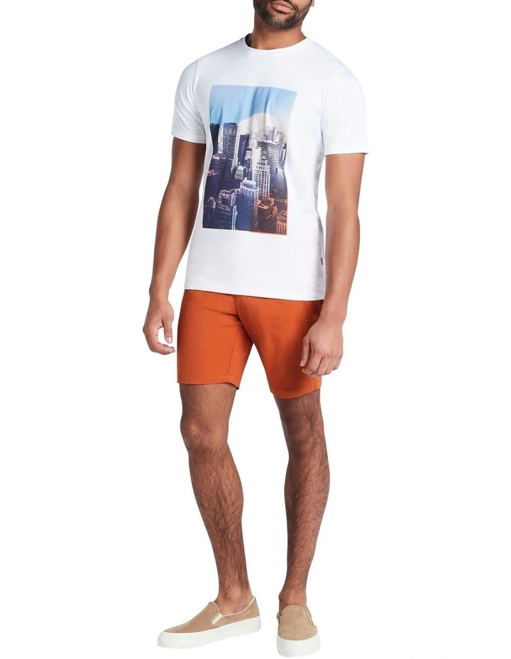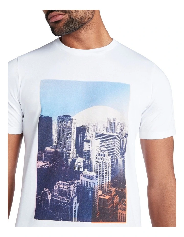 Pair it with anything, this effortless white tee is always good to go, while remaining cool and comfortable in pure cotton. Drawing the eye to its colourful city skyline graphic print, the tee keeps detail elsewhere understated, sticking to classic short tee sleeves and a neat crew neckline.