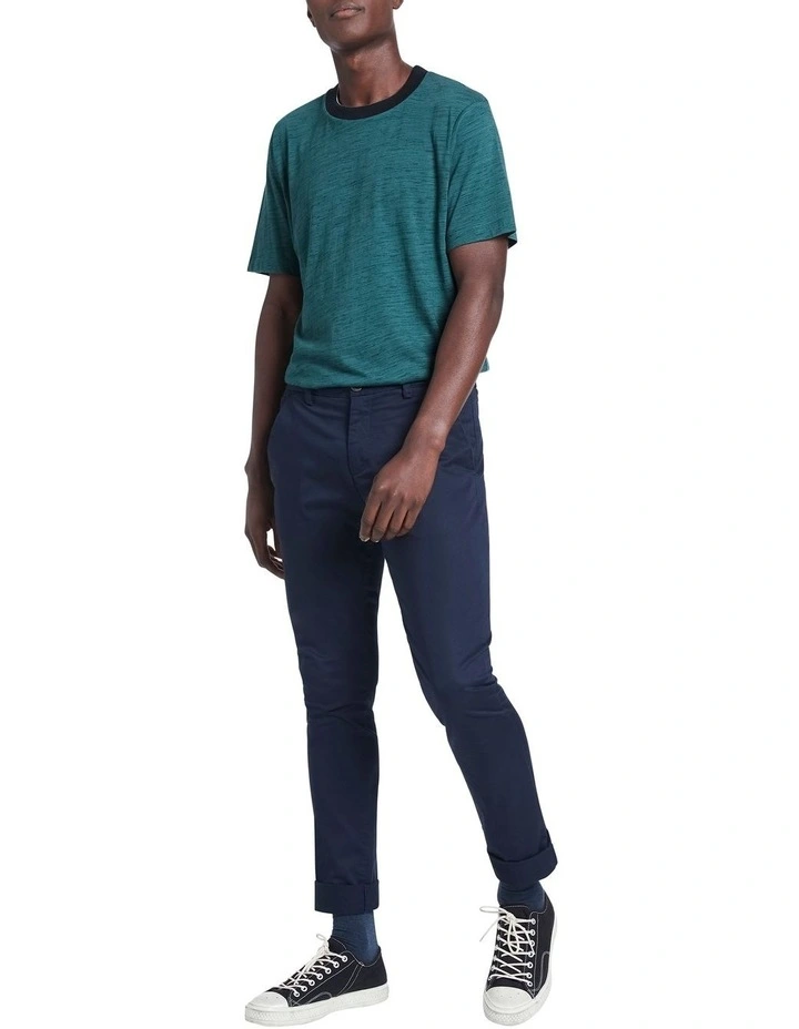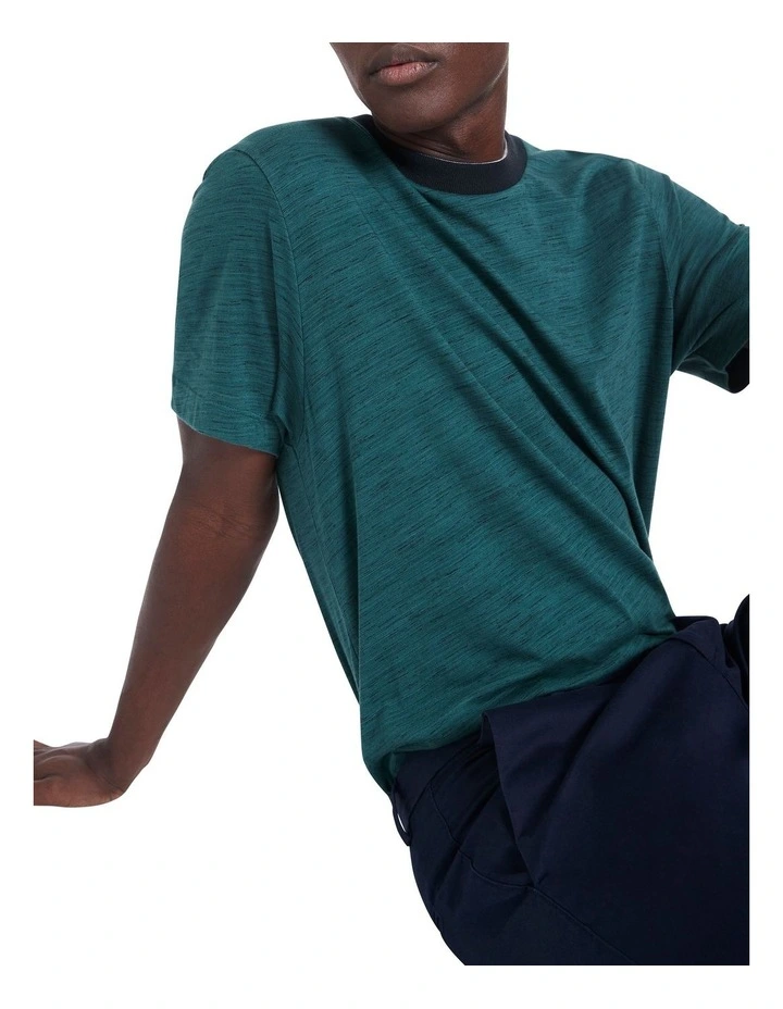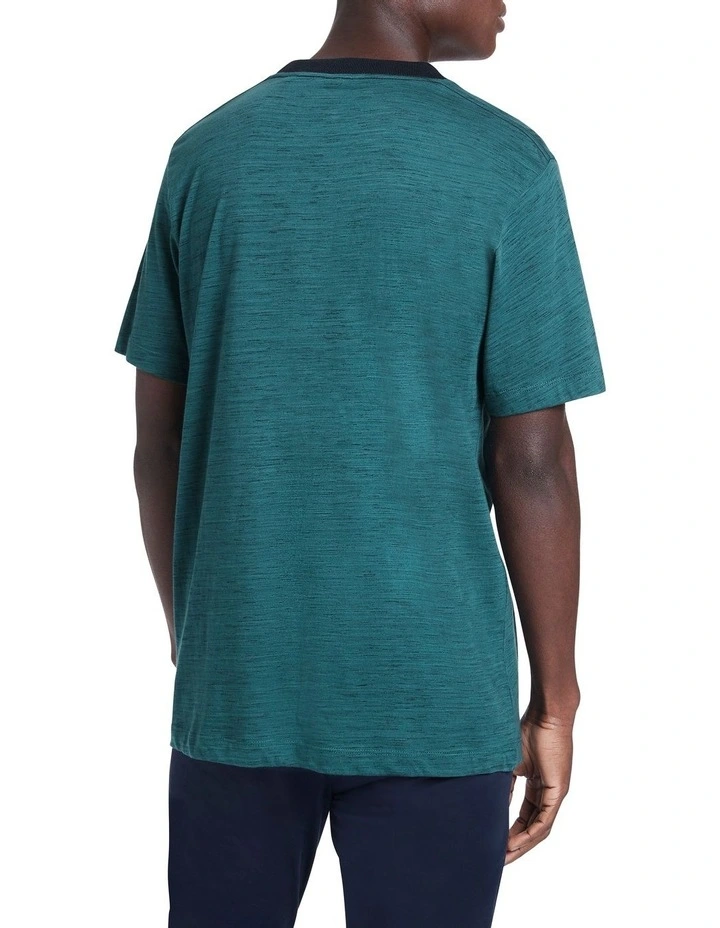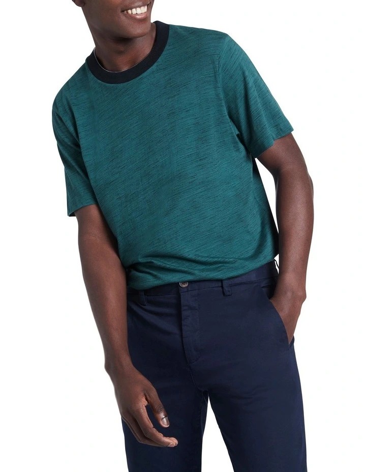 Rich in its colouring, this tee reveals a soft marle effect within a teal hue, perfectly complemented by contrast navy trim detailing at the rib neckband. Soft and breathable, the tee keeps its cool within a flattering, relaxed fit, finished with classic short tee sleeves and neat crew shaping at the neckline.