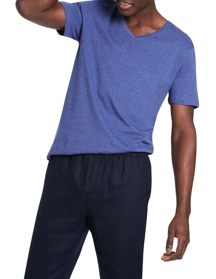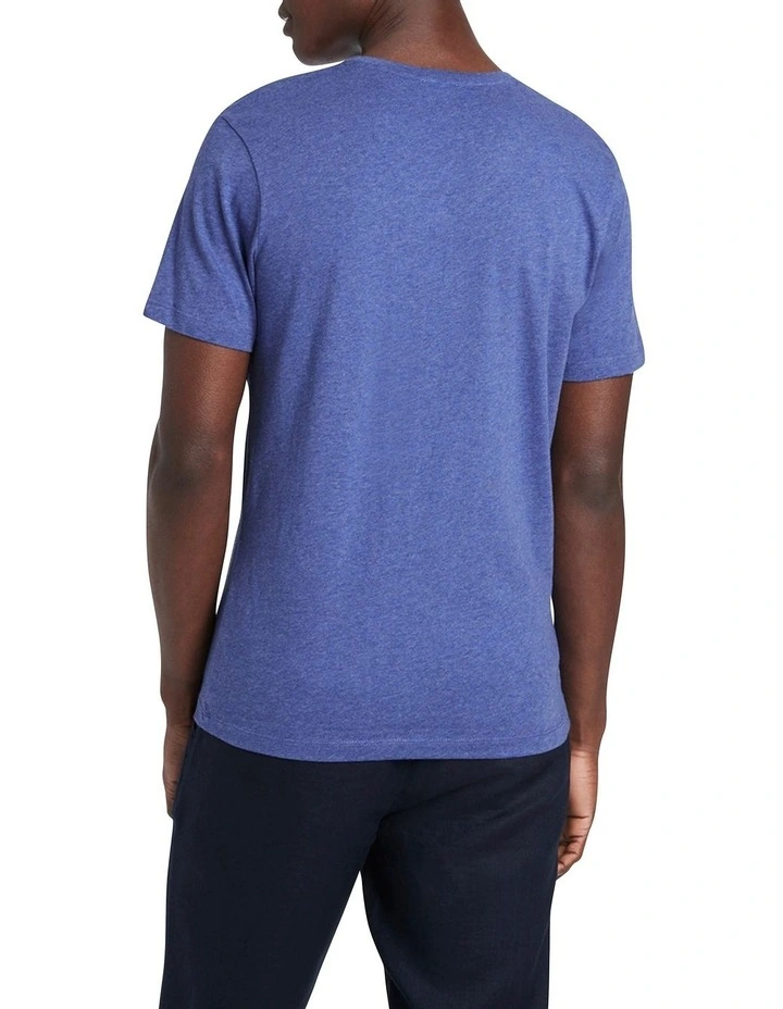 As a go-to basic you will want in every colour, this tee reveals flattering slim shaping through the body, complete with classic short tee sleeves and an open V-neckline. Showing off a soft marle effect within rich denim blue, the tee keeps you cool in super soft cotton, which remains lightweight and breathable even as temps start to rise.