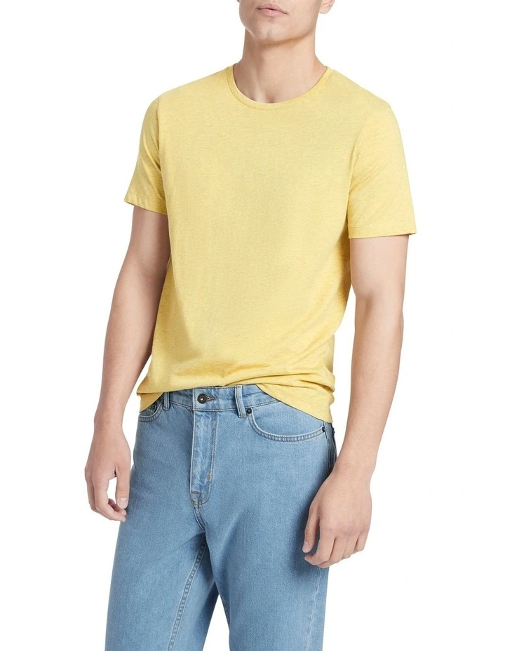Revealing a soft marle effect through its soft corn yellow colouring, this effortless tee creates a slim fit through the body, with short tee sleeves and a fine rib neckband at the simple crew neckline. Your classic wear-everywhere tee, it is made from pure cotton, so not only is it soft against the skin, it also feels lightweight and breathable no matter the season