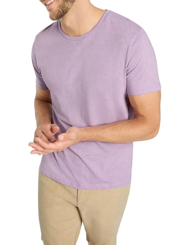 Pale galaxy purple in colour, this appealing tee reveals an effortless marle effect within its soft cotton base, to remain lightweight and breathable year-round. Available in a range of colourways, the tee will act as a go-to basic in your wardrobe, delivering flattering slim shaping through the body, classic short tee sleeves and a soft-touch rib neckband at the crew neckline.
