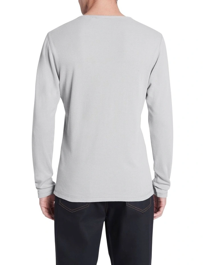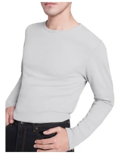 Gorgeously soft, this long sleeve tee is made from pure cotton, revealing a textured waffle effect within a pale grey colouring. Perfect for layering, the tee offers a regular fit throughout, with further detail found in the rib crew neckline and easy-wearing straight-cut hem.