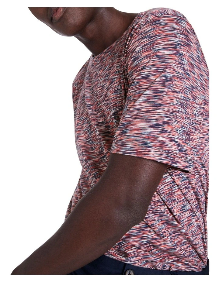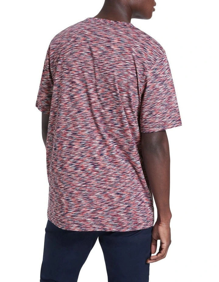 Creating a blurred effect within a woven dye design, this striking crewneck tee shows off a multitude of colour based in shades of merlot, navy and ivory. Lightweight and breathable, the tee is made from pure cotton, so not only does it offer an easy-wearing relaxed fit, it also stays comfortable no matter the weather.