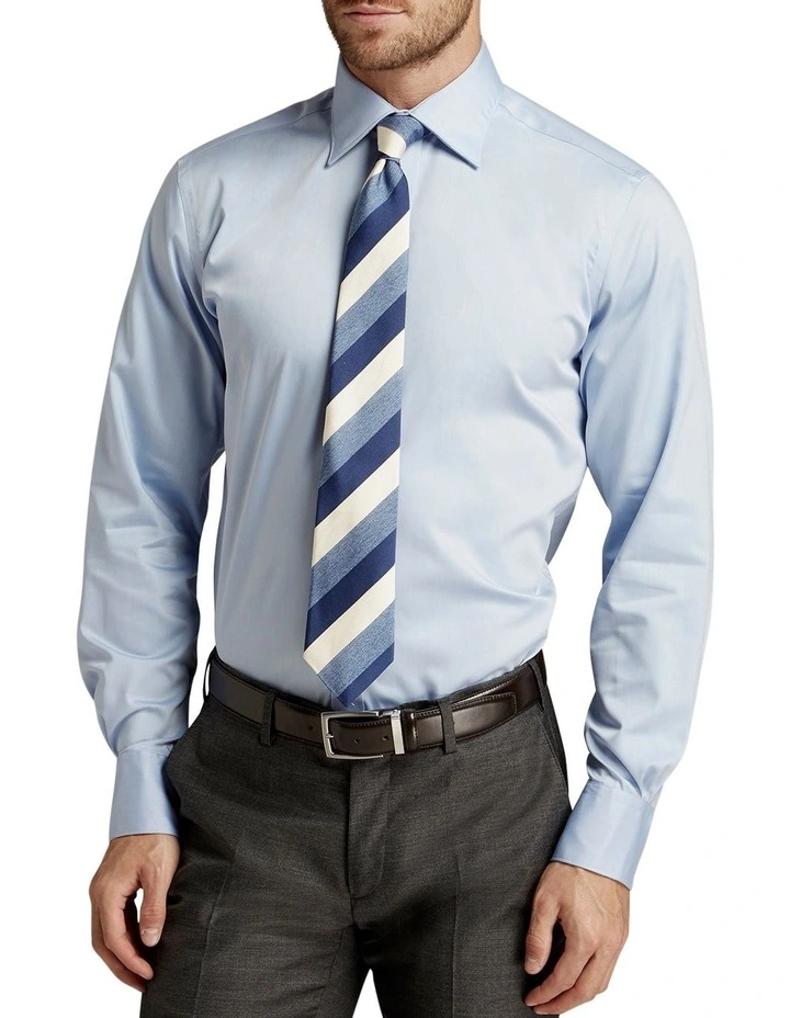 The Whitely Blue Twill Shirt from M.J. Bale is tailored for a super slim fit. Created from 100% cotton it features an oxford collar and two regular cuffs. The classic design makes it a versatile to complete your business or formal styling.
