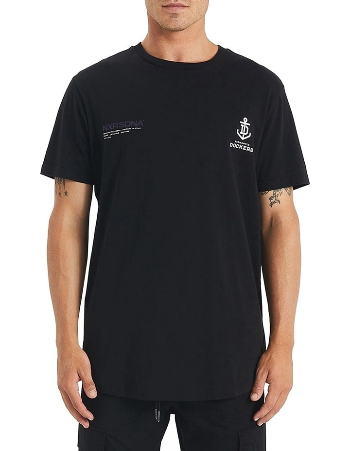 Stay true to your team and celebrate their victories with the Freemantle Dockers Curved Hem T-Shirt in Jet Black. As part of Nena & Pasadenas official AFL supporter apparel collaboration, this tee features an understated NXP logo on the chest and a full-back Freemantle Dockers logo in a subtle black on black colorway.