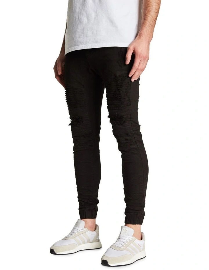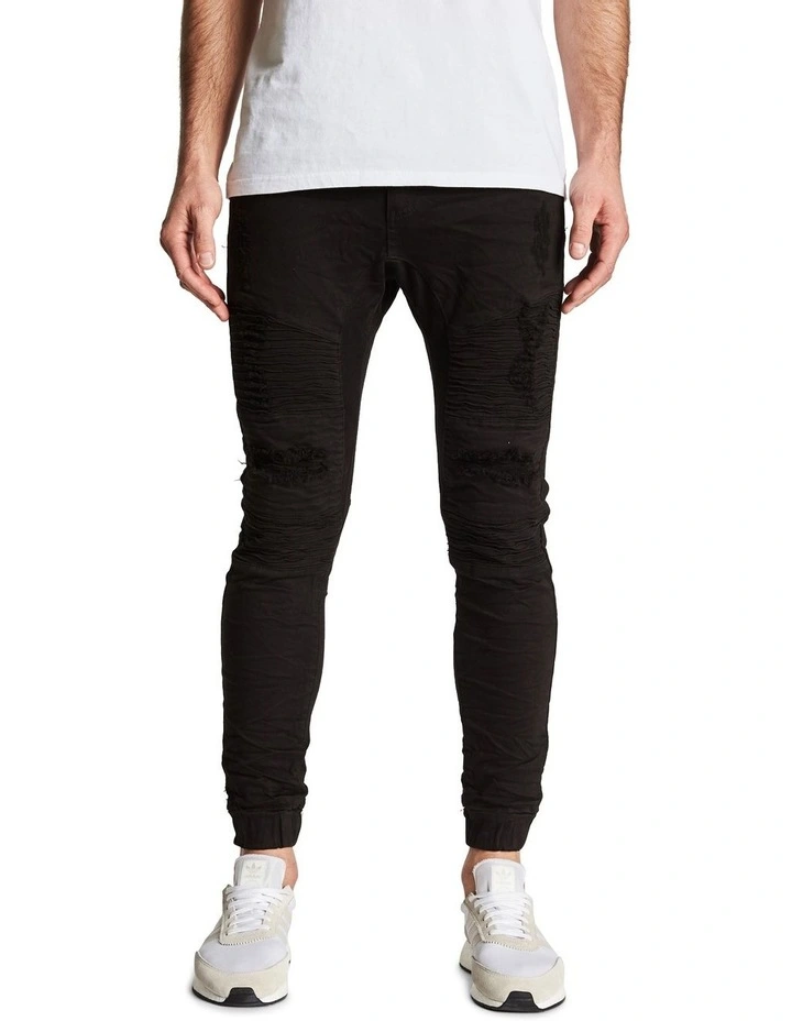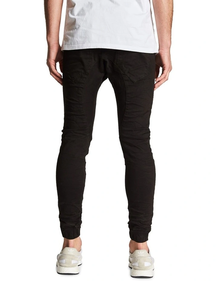 A signature staple of NXP, this jogger pant features pin-tucked panelling down the length of the leg along with elastic ankles and a drop crotch gusset for a supreme level of comfort. Distressed detailing throughout brings an authentic worn vibe to the jean.