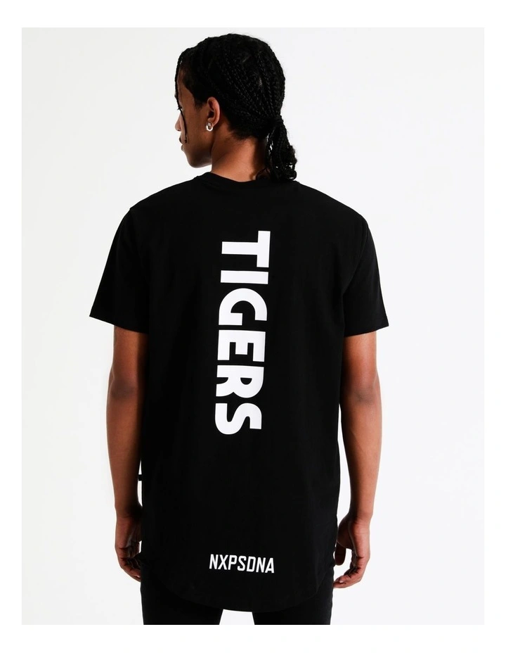 A look that the NXP brand is known for, this tee gives a longer body silhouette, with a curved hem front and back. The black on black design gives a contemporary take on supporter apparel.Â