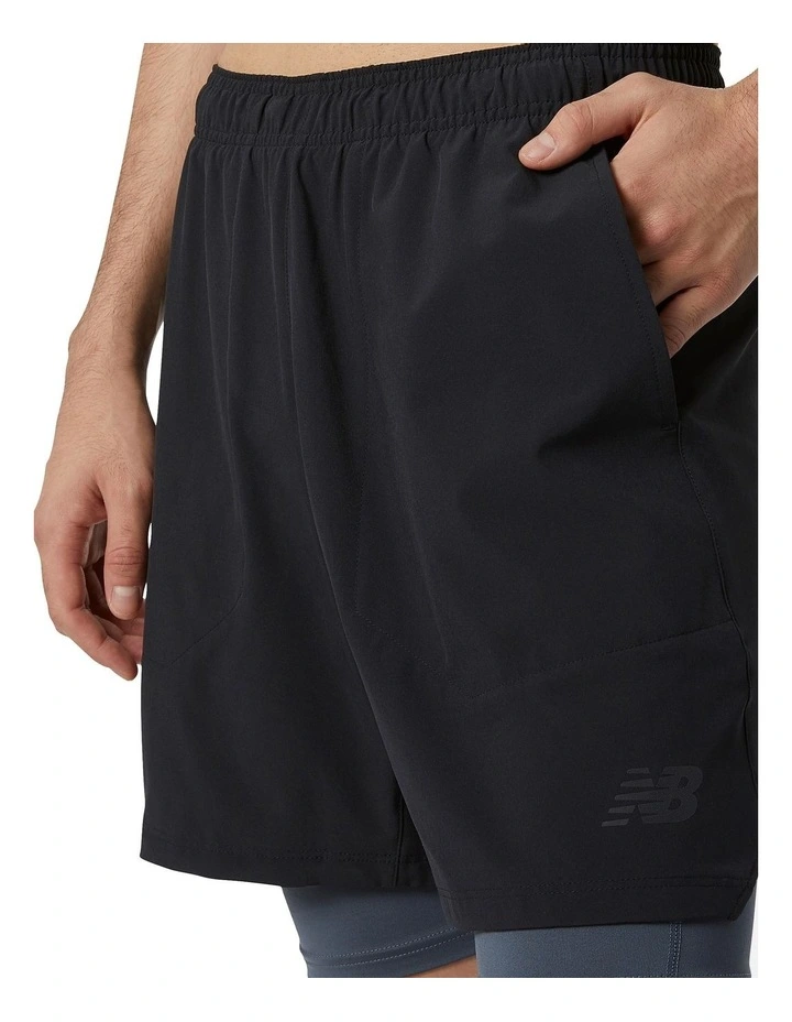 In or out of the gym, our Fortitech 7in 2-in-1 Short is built for mobility as you transition between workouts. These mens training shorts feature a soft, lightweight stretch woven shell over a built-in inner short. NB DRY moisture wicking helps to keep you cool and comfortable, while a pocket on the inner short provides convenient storage.