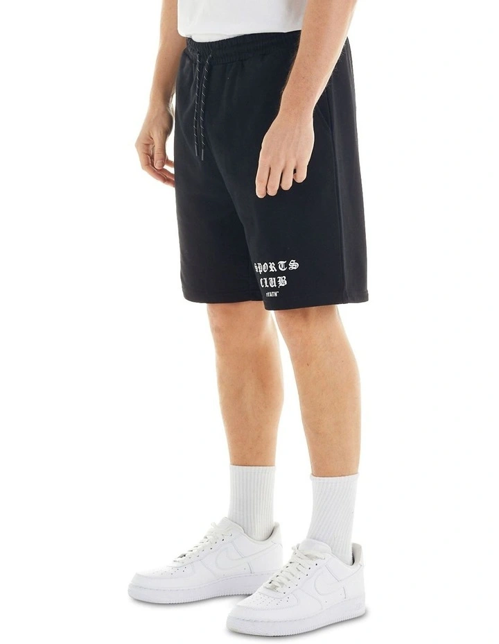 Features: Elastic Waistband & Drawcord, Sports Club Print, 2x back Pockets, 2x hip pockets.