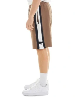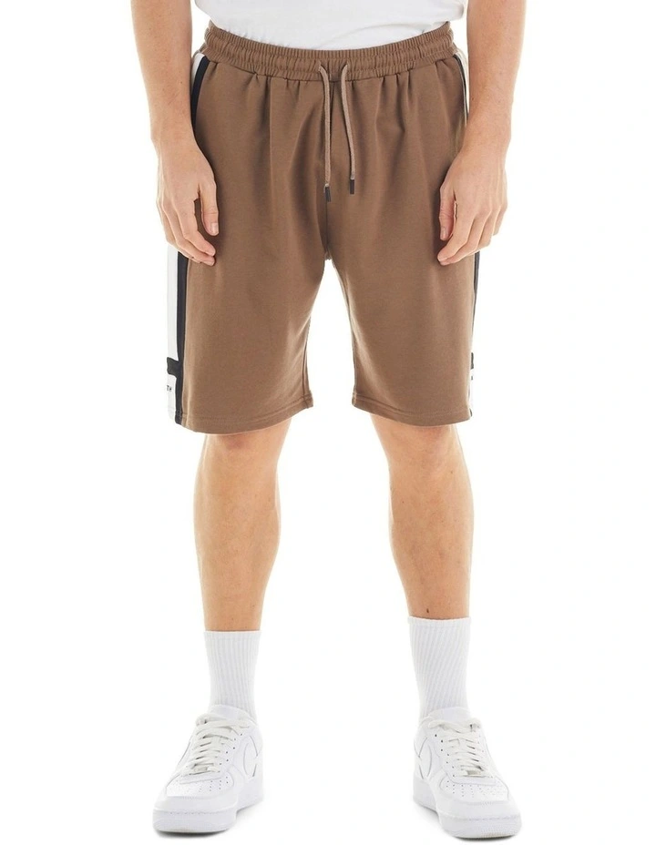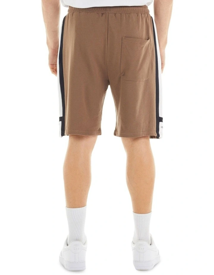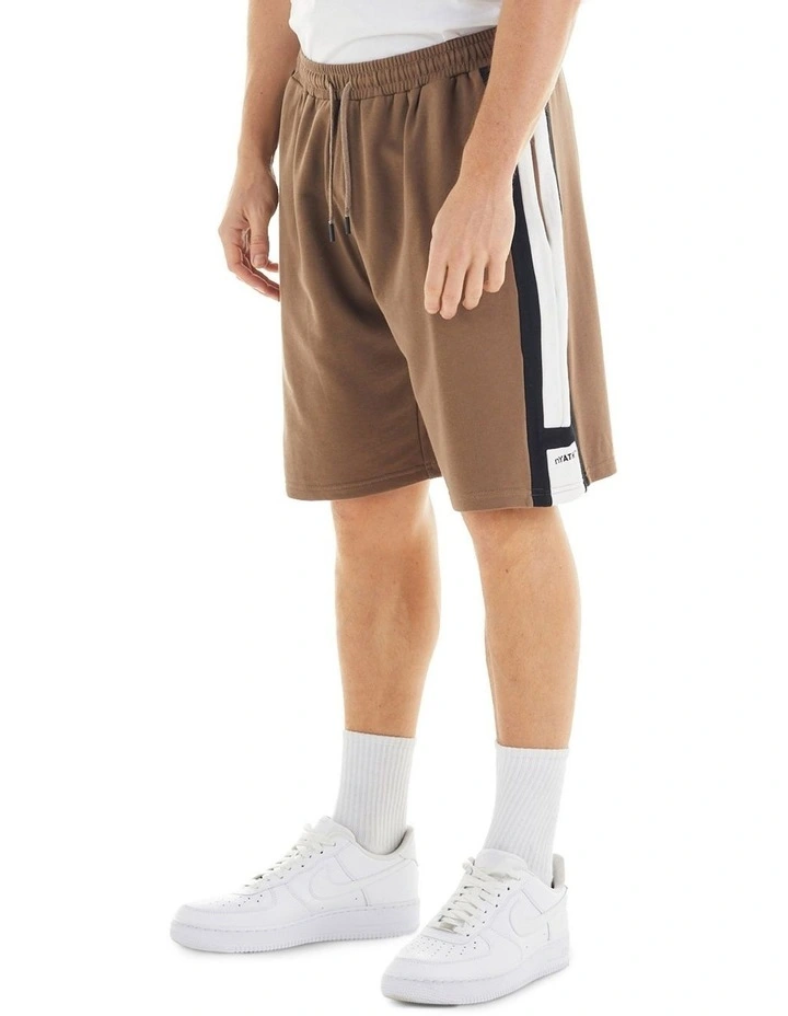The Relay short features dual front pockets, embroidered logo with contrast side leg panelling in black, brown and white.Â