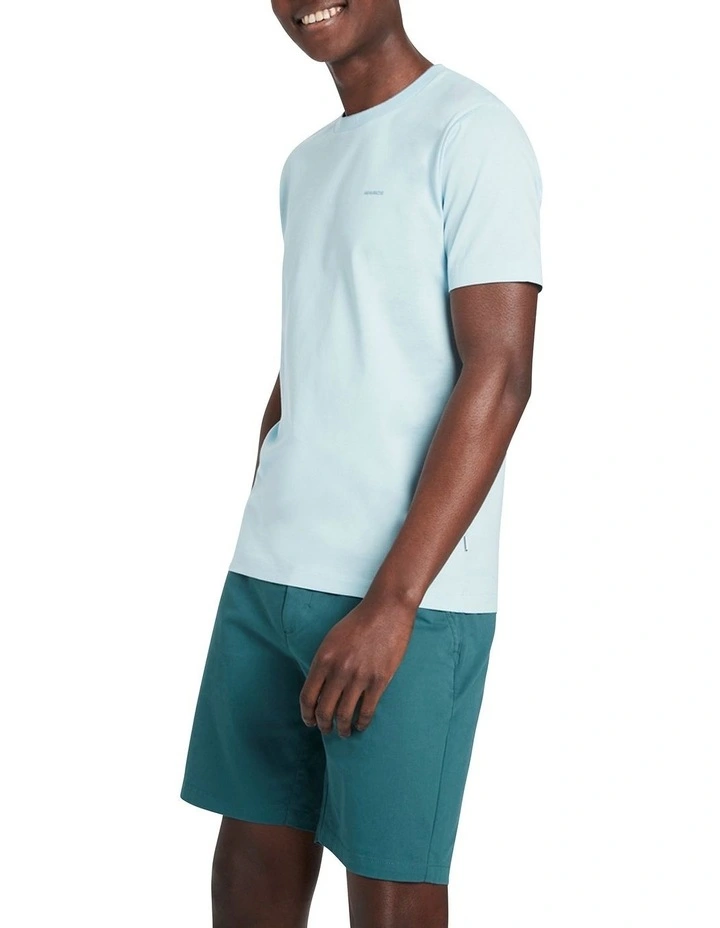 Made from mercerised cotton, the tee delivers a smooth, silky finish and fully saturated colour within its frost blue fabric.