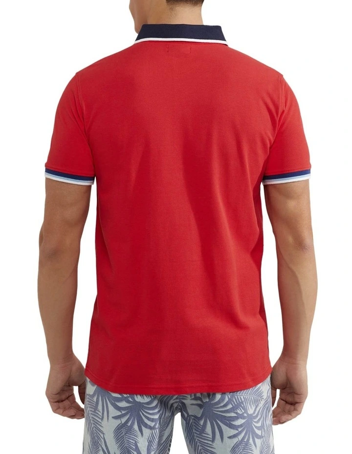 The Cam Contrast Collar Pique Polo is a modern take on an iconic style. This slim fit polo is crafted from organic cotton in a textured pique knit for a more formal feel. It features a contrast collar, button-up neckline, and chest icon. Team yours with chinos or shorts with sandals for a sharp leisure look.