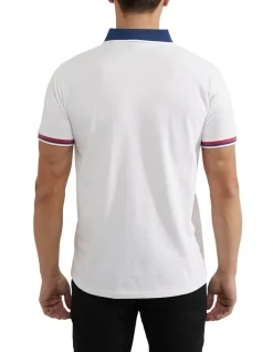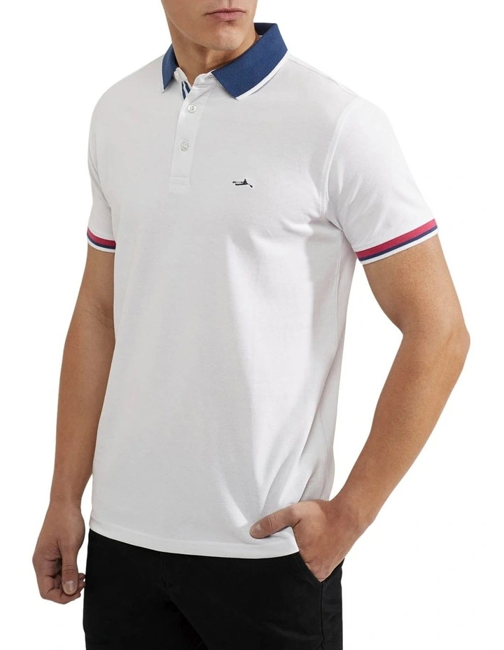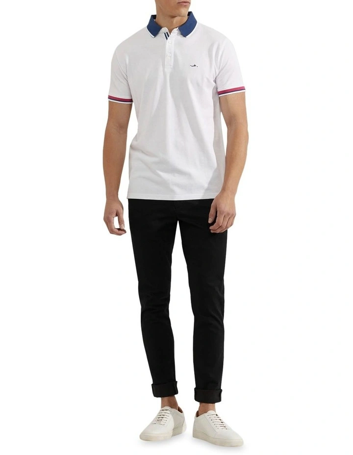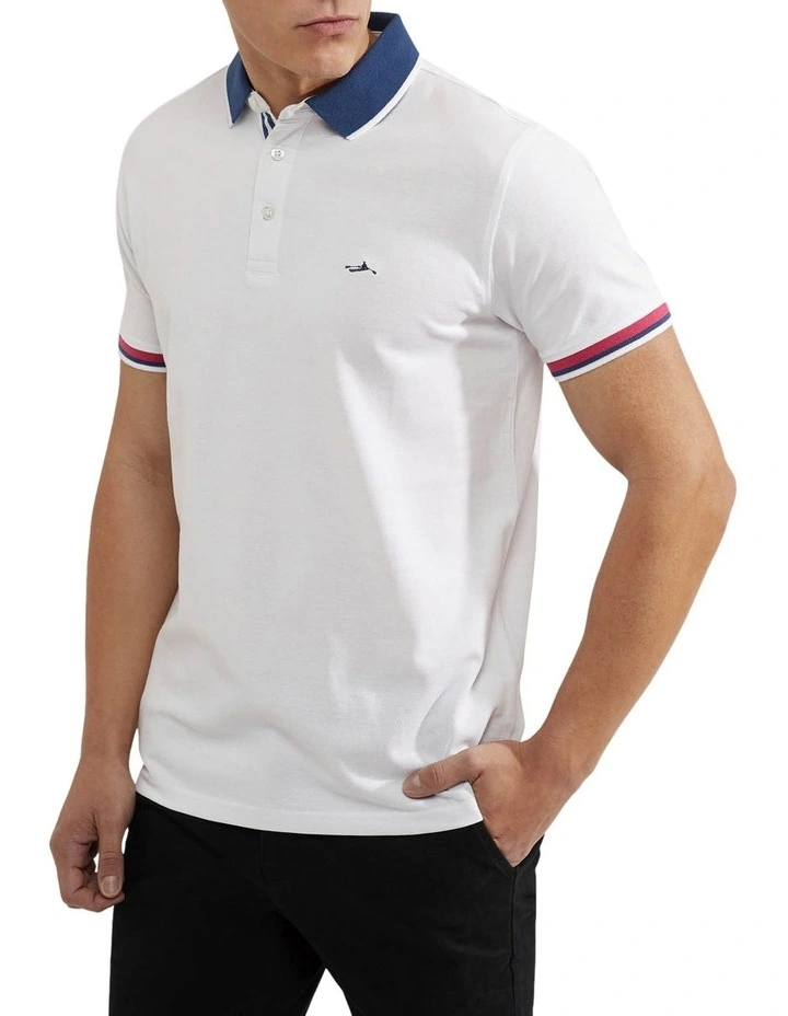 The Cam Contrast Collar Pique Polo is a modern take on an iconic style. This slim fit polo is crafted from organic cotton in a textured pique knit for a more formal feel. It features a contrast collar, button-up neckline, and chest icon. Team yours with chinos or shorts with sandals for a sharp leisure look.