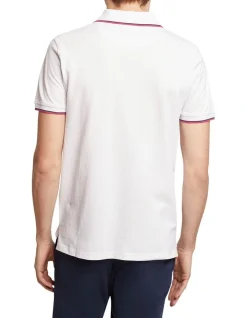 The Derek Pique Tipping Polo is a modern take on an iconic style. This slim fit polo is crafted from 100% organic cotton with a textured pique knit for a more dressy feel. It features a contrast trim on the sleeves and collar, button-up neckline and chest icon. Style it with chinos and boat shoes for a dapper look.