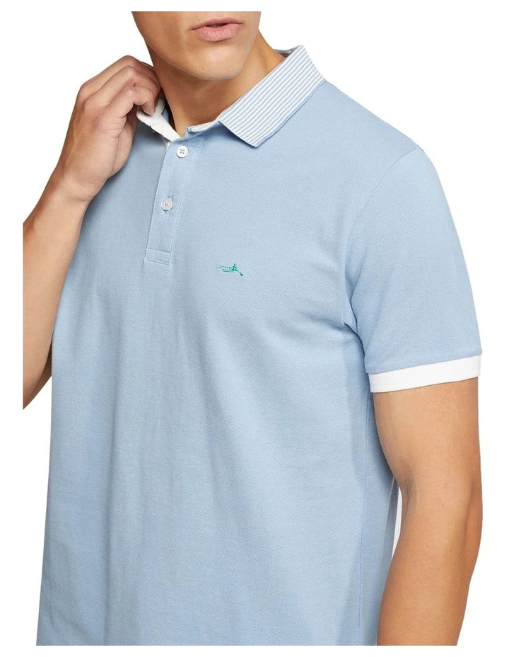 Casual and cool, the Dylan Striped Collar Polo is a fresh take on a wardrobe staple. This polo is crafted from 100% organic cotton and is cut in a slim fit. It features a button up neckline, contrast collar and cuffs, striped collar detail and a small chest icon. Complete the look with chinos and sneakers.
