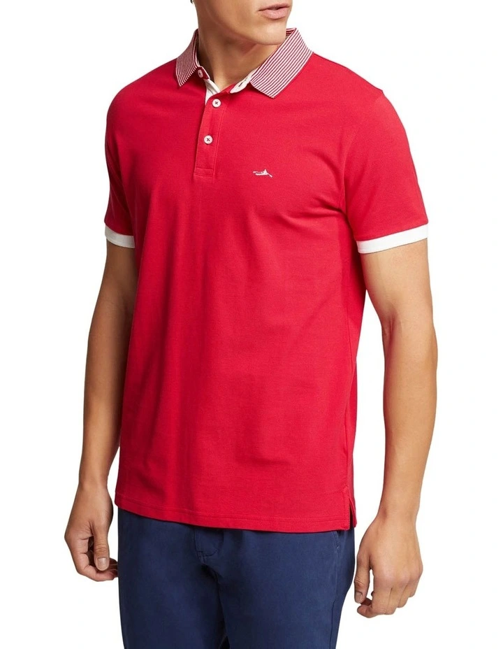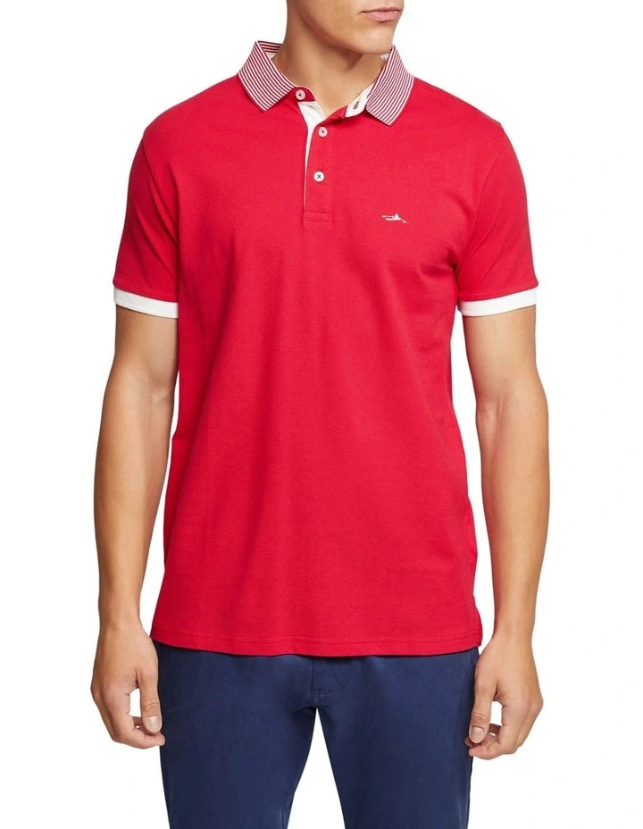 Casual and cool, the Dylan Striped Collar Polo is a fresh take on a wardrobe staple. This polo is crafted from 100% organic cotton and is cut in a slim fit. It features a button up neckline, contrast collar and cuffs, striped collar detail and a small chest icon. Complete the look with chinos and sneakers.