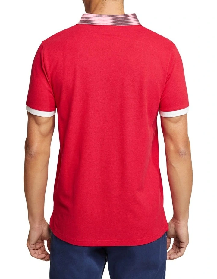 Size and Fit: Slim fit. Our model is wearing a size AU M polo and usually takes a size M. He is 185cm (6’1.75”) tall with a 96.52cm (38”) chest and 81cm (32”) waist.
