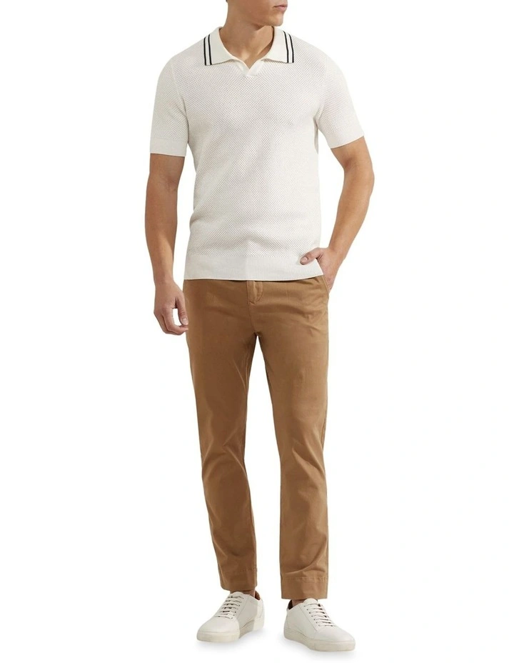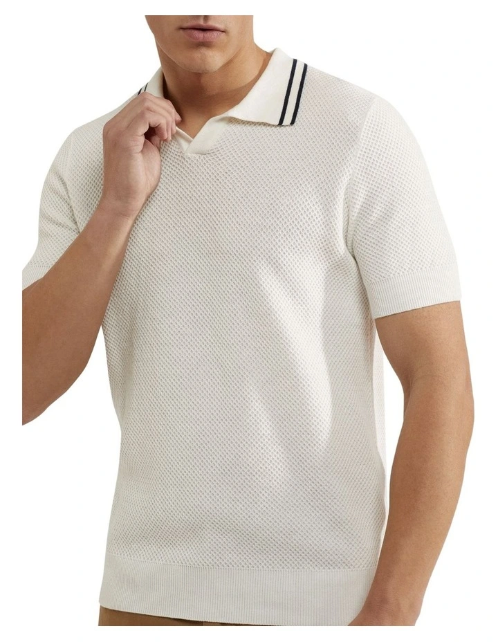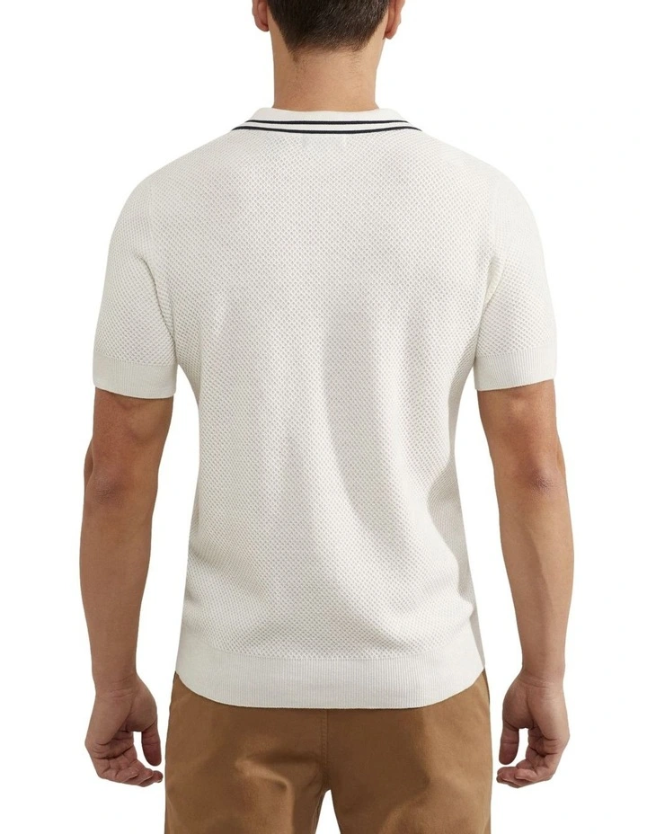 Comfy and stylish, the Fraser Knitted Polo will enhance your casual collection. This slim fit mens polo is crafted from cotton in a knitted weave. It features a small collar with a contrast stripe, v neckline and ribbed trims. Team it with chinos and sneakers for a smart weekend look.