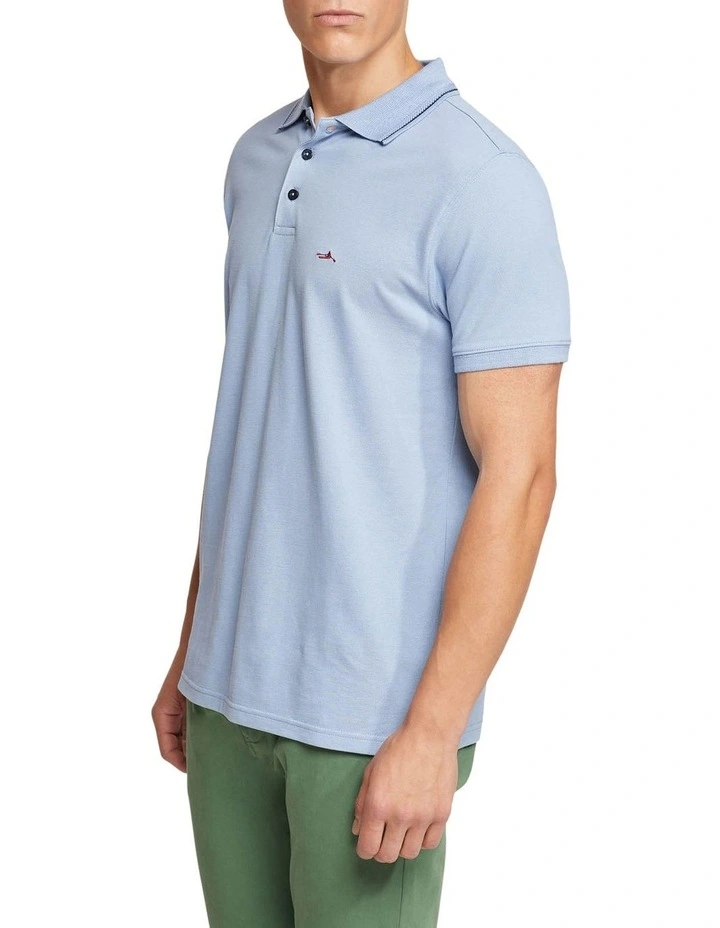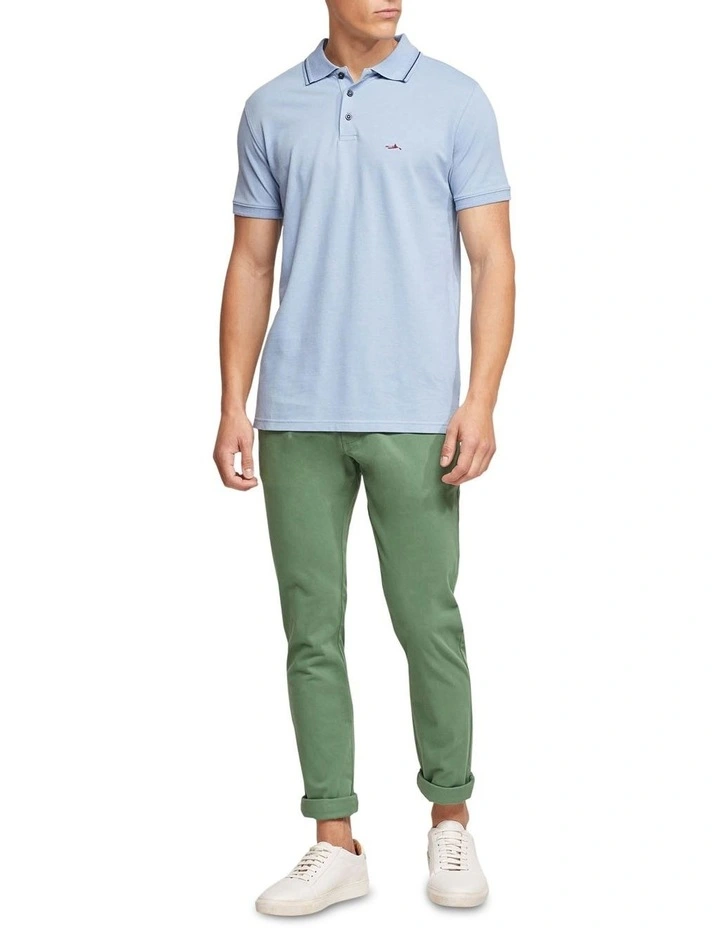 Comfy and stylish, the Jamie Polo will enhance your casual collection. This slim-fit mens polo is crafted from 100% organic cotton and features a stitched contrast stripe on the collar, a small chest icon and button up neckline. Team it with chinos and or shorts with white sneakers for a smart weekend look.